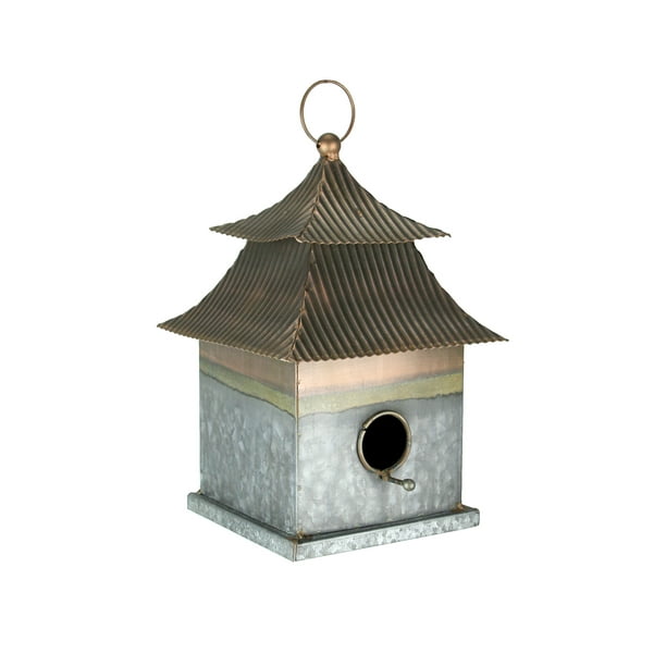Galvanized Metal Japanese Pagoda Style Hanging Birdhouse Walmart Com